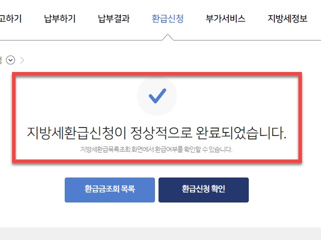 오늘 작업하였던 지방세 환급 신청이 완료되었다는 메시지를 금방 만나게 되는 것을 경험하게 됩니다