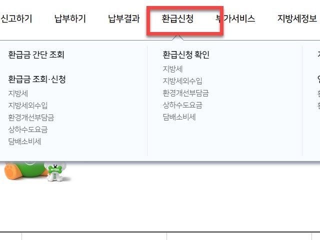 지방세 환급금 인터넷 홈페이지 신청 과정