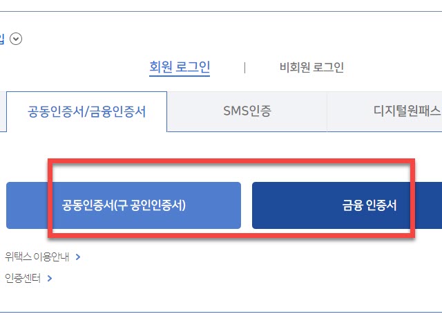 위택스 등록된 로그인 계정에 금융인증서로 확인