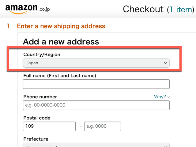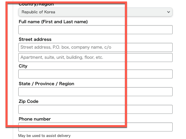 일본 아마존에서는 Republic of Korea 를 선택해 주시면 됩니다