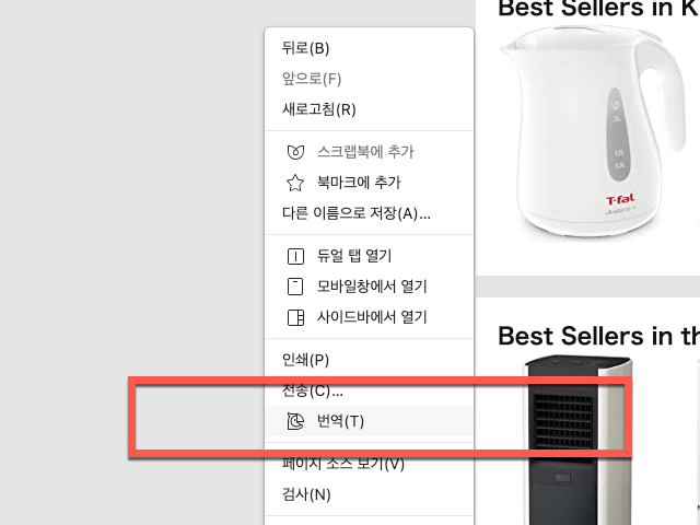 또는 네이버 웨일 인터넷 브라우저를 사용하고 있다면 네이버 파파고의 외국어로 또는 한국어 즉시 번역해 주는 기능 사용을 크롬 브라우저와 같이 팝업메뉴에서 “번역” 을 선택하여 이용하는 두번째 방법이 있습니다