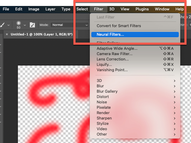 작업을 하려는 이미지가 준비되었다면 <필터> 메뉴에 있는 <Neural Filters> 이름의 아직 한국어로 번역되지 않은 항목을 사용하면 작업을 시작할 수 있습니다