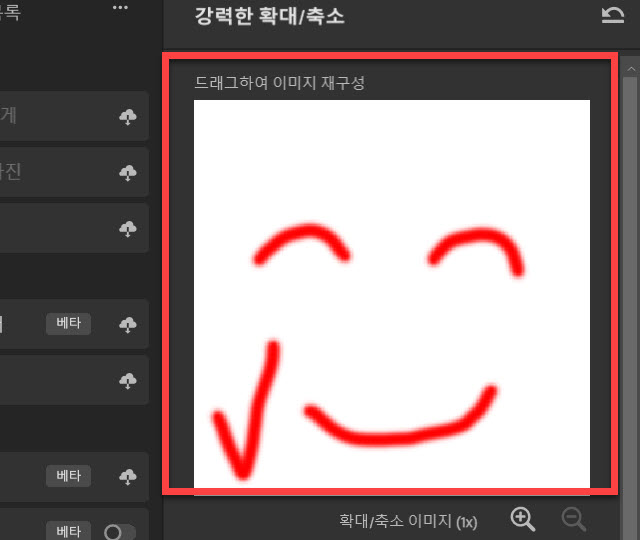 아래 부분에는 이미지 해상도를 최대 16배까지 늘릴 수 있는 확대 돋보기 버튼을 사용할 수 있습니다