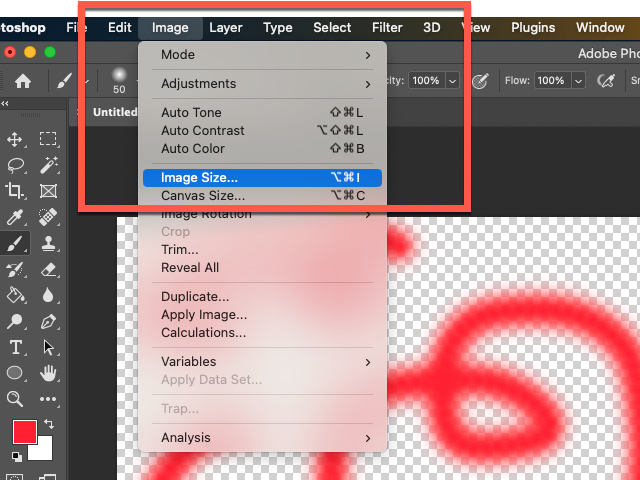 맥 전용 키보드에 있는 <Option>과 <Command> 의 전용 키와 <I> 키의 조합으로 이미지 크기에 대한 작업을 할 수 있습니다