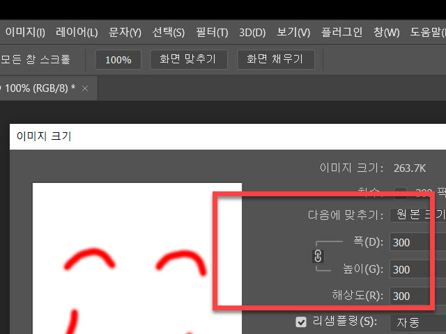 MS Windows OS 한글 메뉴 포토샵에서의 고해상도로 이미지 변경