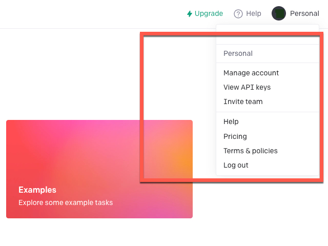 우측영역에는 계정의 정보와 API key 정보 그리고 유료 결제 이용 시 금액의 정보를 해당 하위 메뉴에서 찾아 살펴볼 수 있습니다
