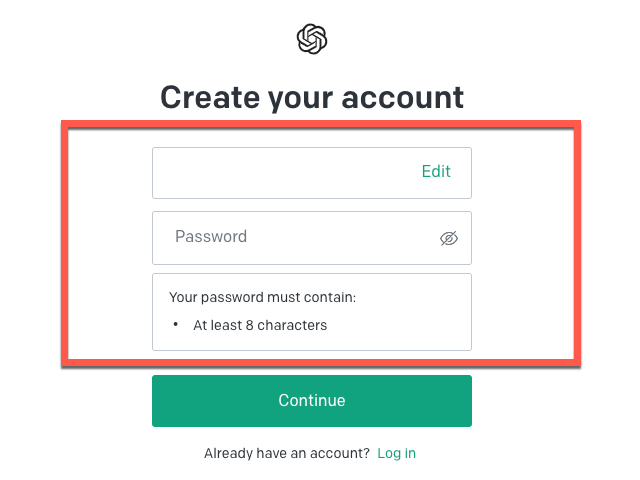 ChatGPT에서 로그인 계정에서 사용할 비밀번호는 최소 8 자 이상을 사용해야 하는 조건을 지켜줘야 합니다