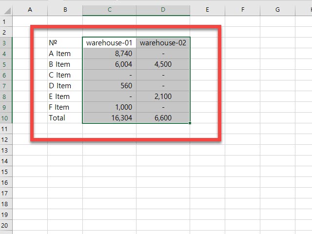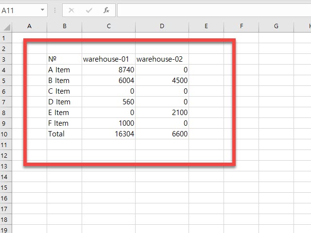 Warehouse-01에 항목에 해당하는 숫자를 선택 후