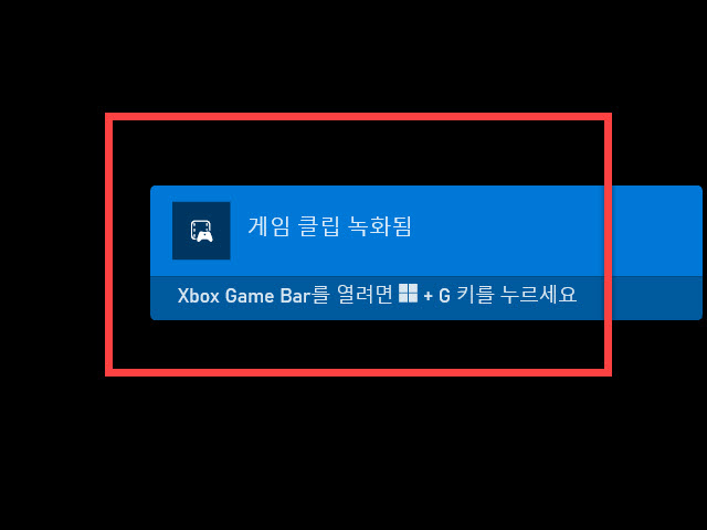 녹화를 종료하면 <게임 클립 녹화됨> 의 팝업 윈도우가 우측 영역에 보입니다