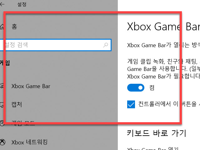 Game Bar 사용을 위한 단축키 및 설정