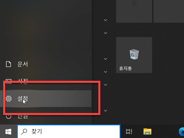 윈도우 바탕화면 왼쪽에 있는 시작버튼을 클릭하여 <설정> 메뉴를 찾아 클릭하여 필요한 기능이 있는 곳으로 이동을 시작합니다