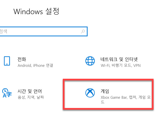 Windows 설정의 변경 시 사용하는 윈도우창으로 이동하셨다면 Xbox Game Bar, 캡처, 게임 모드 의 간단한 설명이 있는 <게임> 항목을 선택합니다