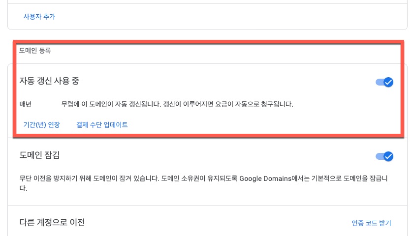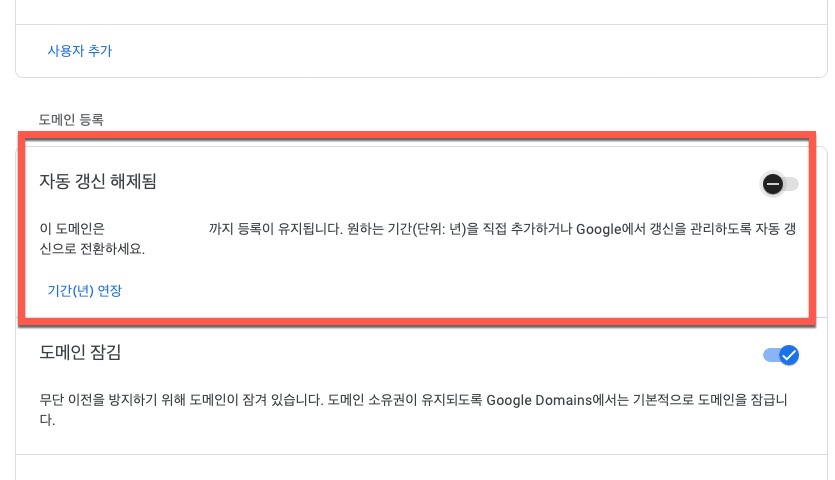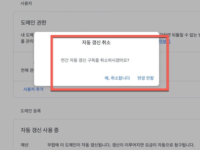 구글 도메인에 등록한 내 도메인 자동 갱신 연장 해제 방법