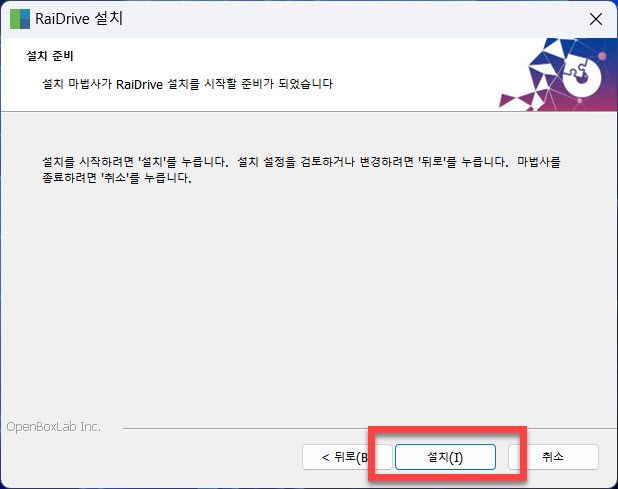 레이 드라이브 사용을 위한 설치 준비 작업이 완료되면 이제는 화면에 있는 <설치(I)> 버튼을 누르는 것으로 사용자에게 요구되는 작업은 마무리하게 됩니다…