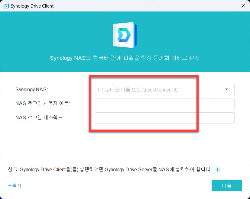 시놀로지 드라이브(Drive) 폴더 파일 동기화 Windows 설정방법