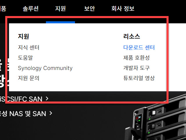 <다운로드 센터> 에서는 관리하는 나스에 대한 OS 업그레이드와 응용프로그램이 필요할 때 찾을 수 있습니다