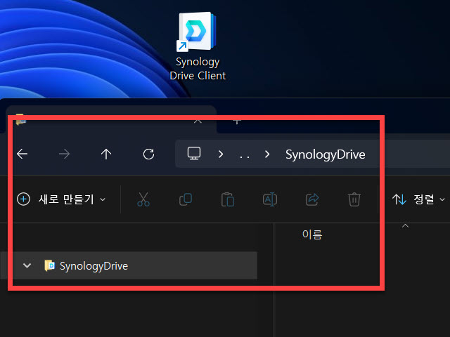 윈도우 바탕화면에는 DSM에서 보았던 시놀로지 드라이브 클라이언트 앱의 바로가기 아이콘이 추가되면서 언제든지 실행 시작할 수 있게 배치되어 있는 변화 모습을 볼 수 있습니다