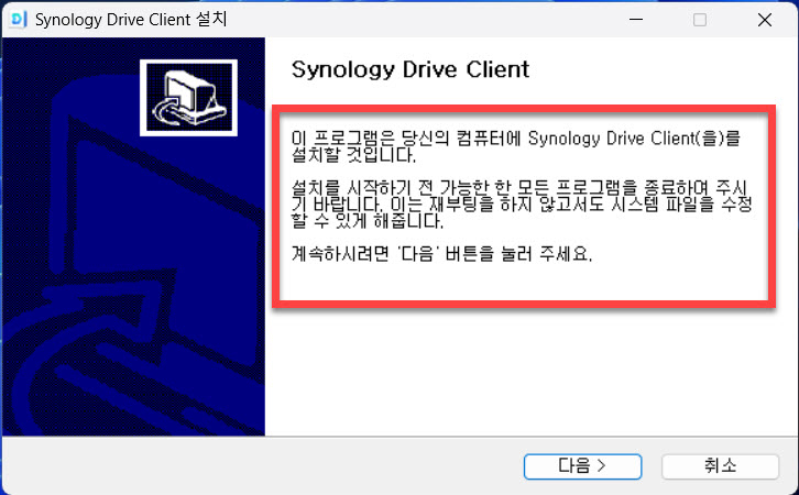 추가 비용에 대한 부담과 고민없이 이미 사용되고 있는 시놀로지 나스의 기능 중 쉽게 활용할 수 있는 드라이브 동기화를 위한 MS-Windows 11에서 사용할 수 있도록 설치하는 모습을 함께 보았습니다