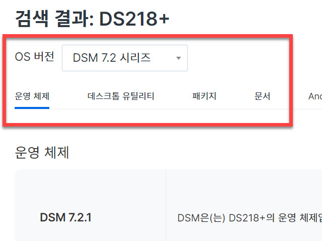 보유하고 있는 NAS 모델을 선택하면 설치할 수 있는 운영체제를 이곳에서도 받을 수도 있습니다