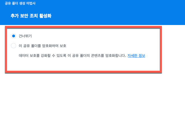 공유 폴더에 대한 암호화 보호에 대한 선택 단계 후