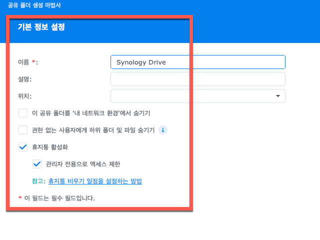 파일 스테이션의 공유 팀폴더 만들어 준비하기