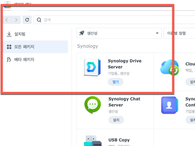 시놀로지 서버에 내 파일 폴더 백업 동기화를 위한 드라이브 패키지 설치
